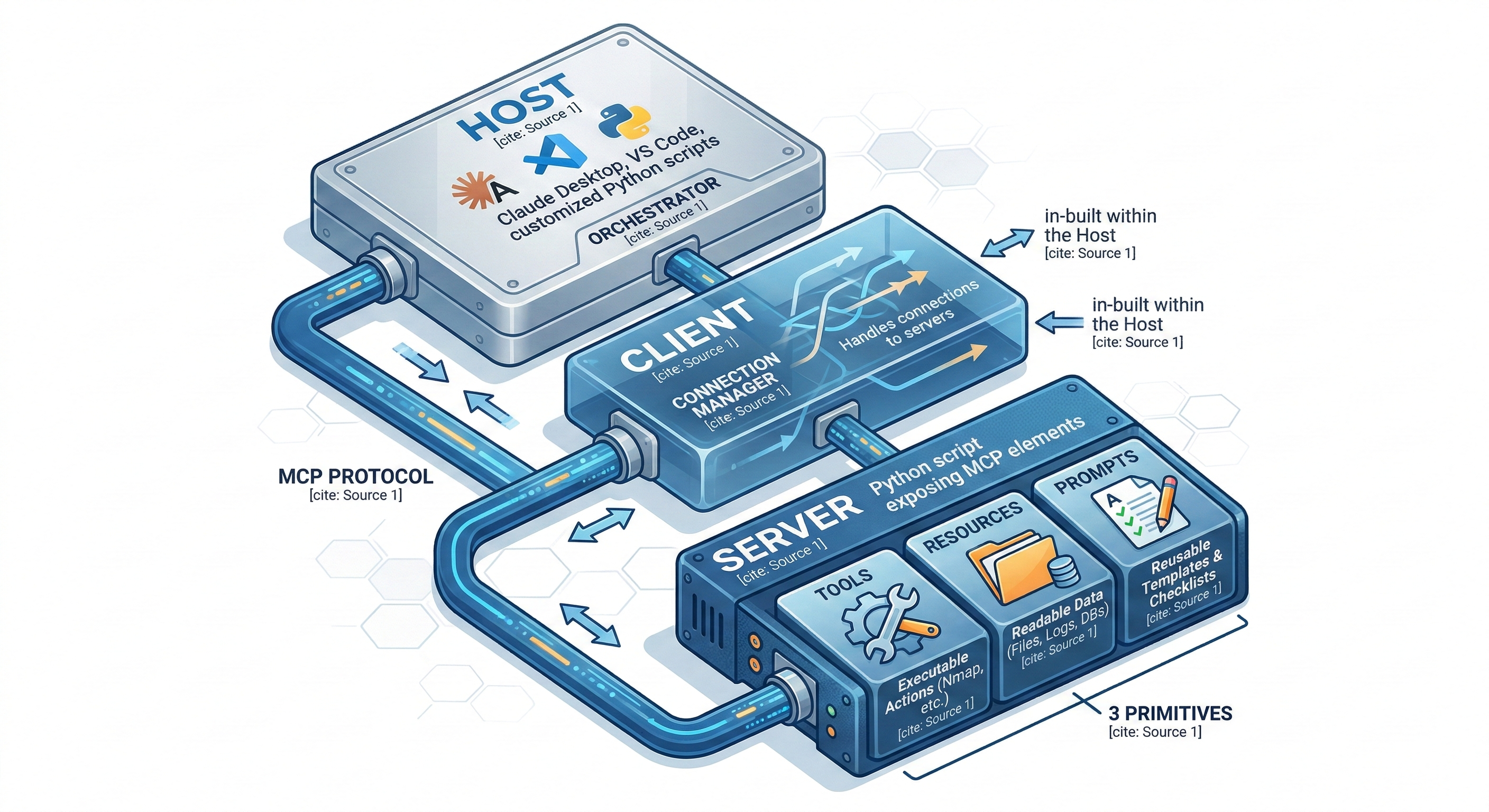 🛠️ Server: Expõe tools, resources e prompts (Seu script Python com as tools).
